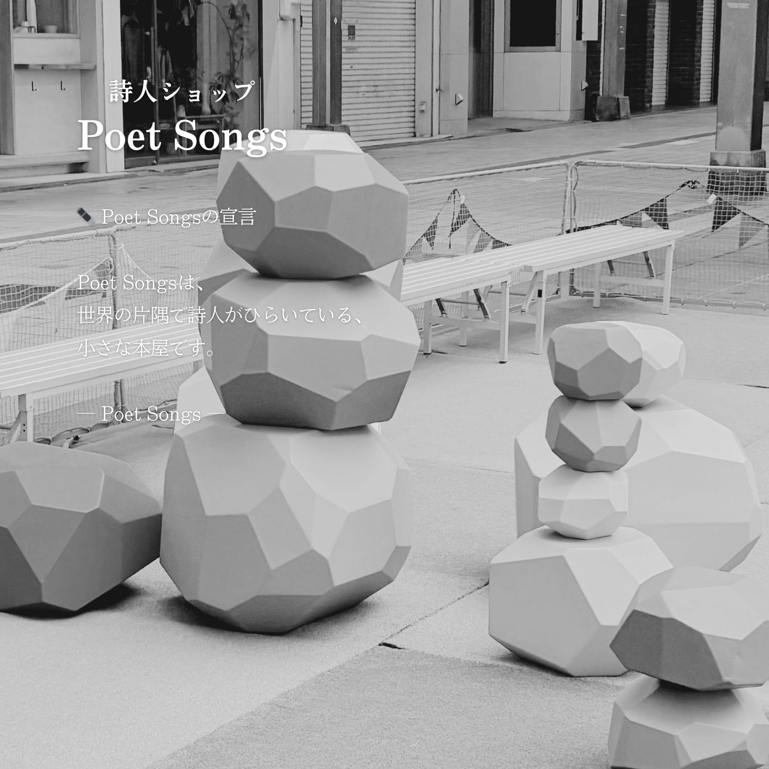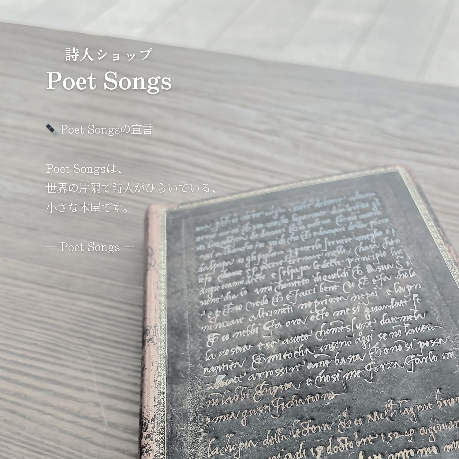 ✒️ Poet Songsの宣言 Poet Songsは、 世界の片隅で詩人がひらいている、 小さな本屋です。 ― Poet Songs ―