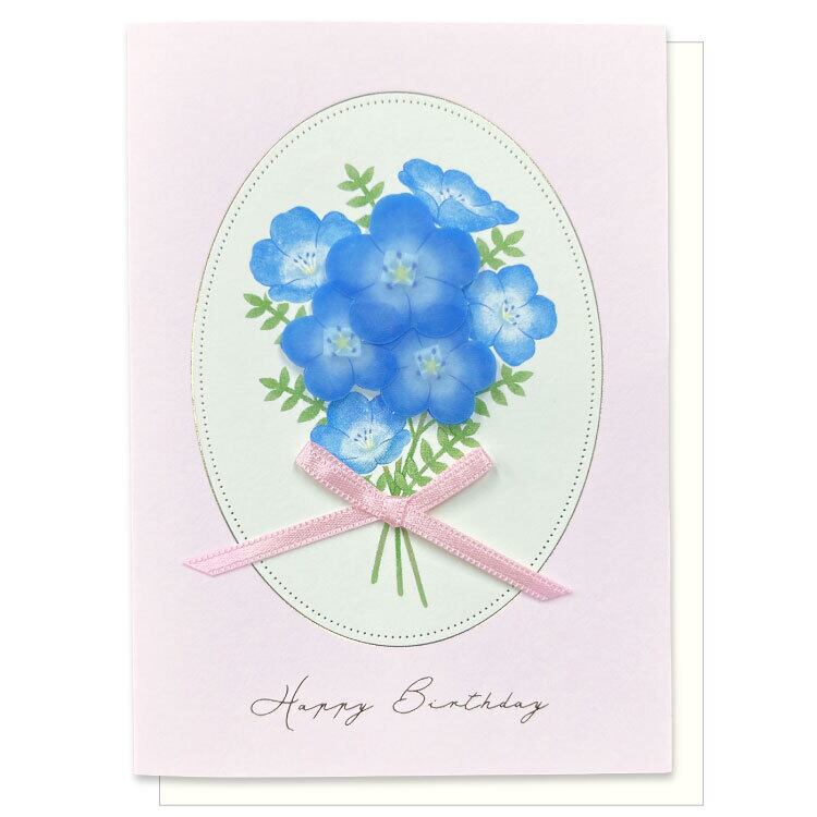 大切なお誕生日を祝う、華やかなトレペフラワーグリーティングカード、バースデー(ネモフィラ)K12-GL-63