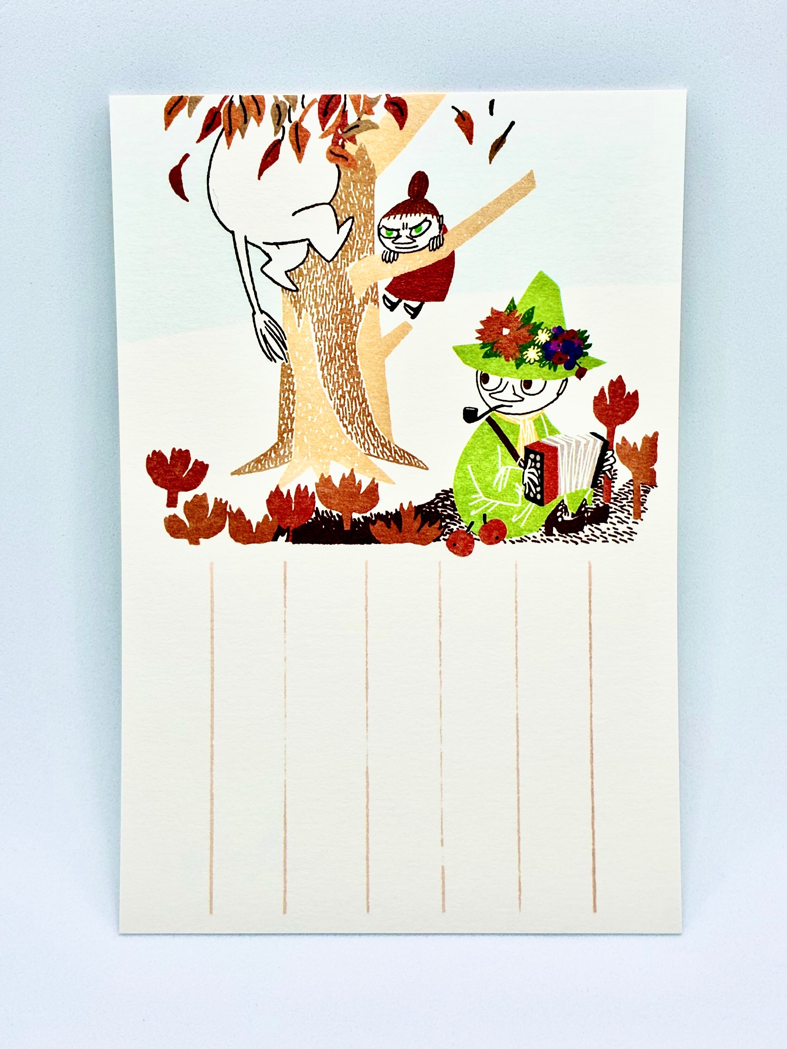 秋の訪れを感じる可愛らしいムーミンのポストカードです。