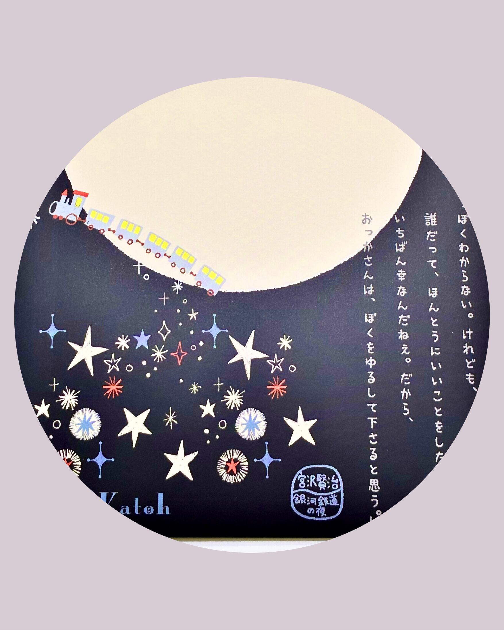 『銀河鉄道の夜』をイメージして描いかれたイラストが素敵です。