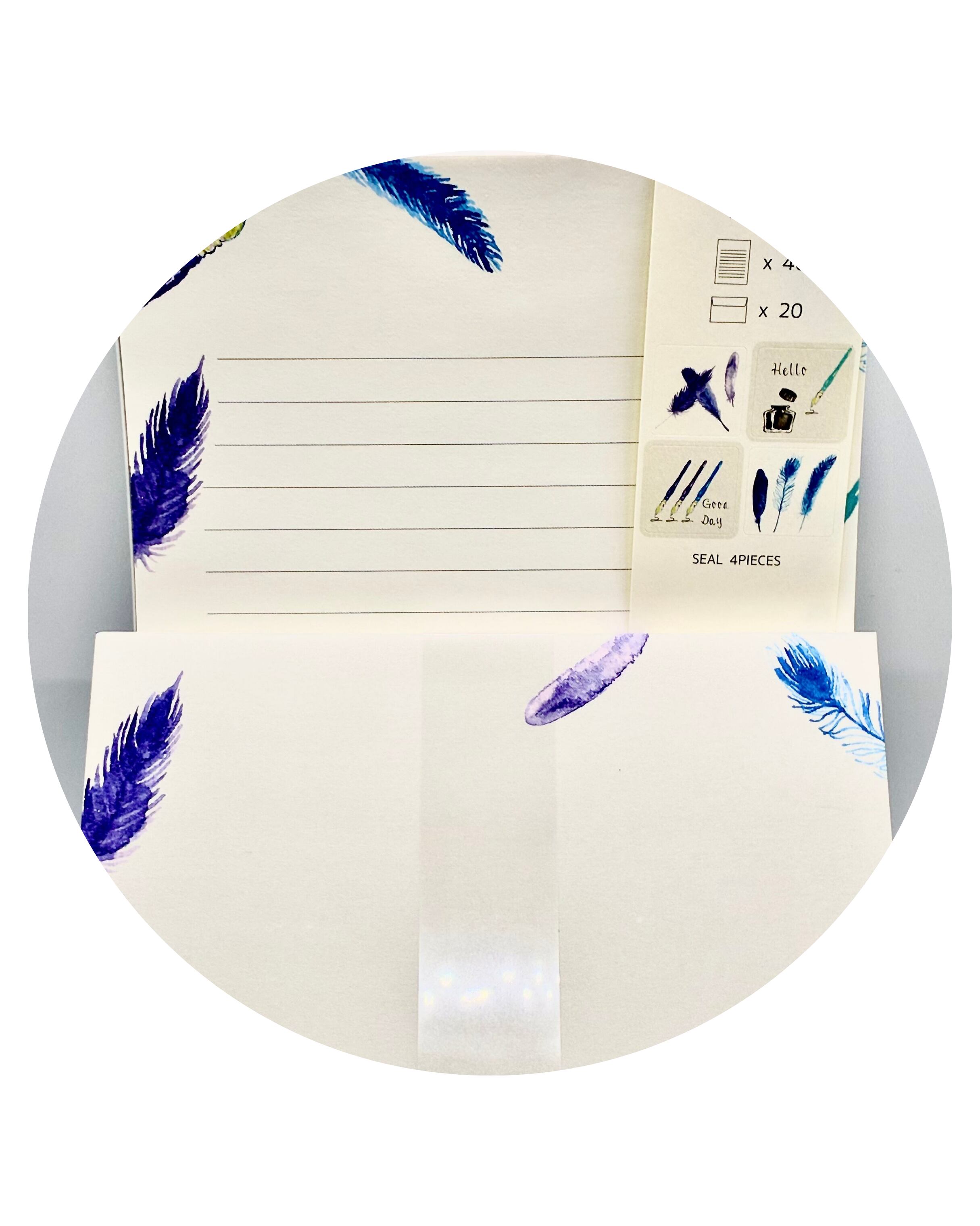 便箋40枚、封筒20枚、封印シール4枚のセット。