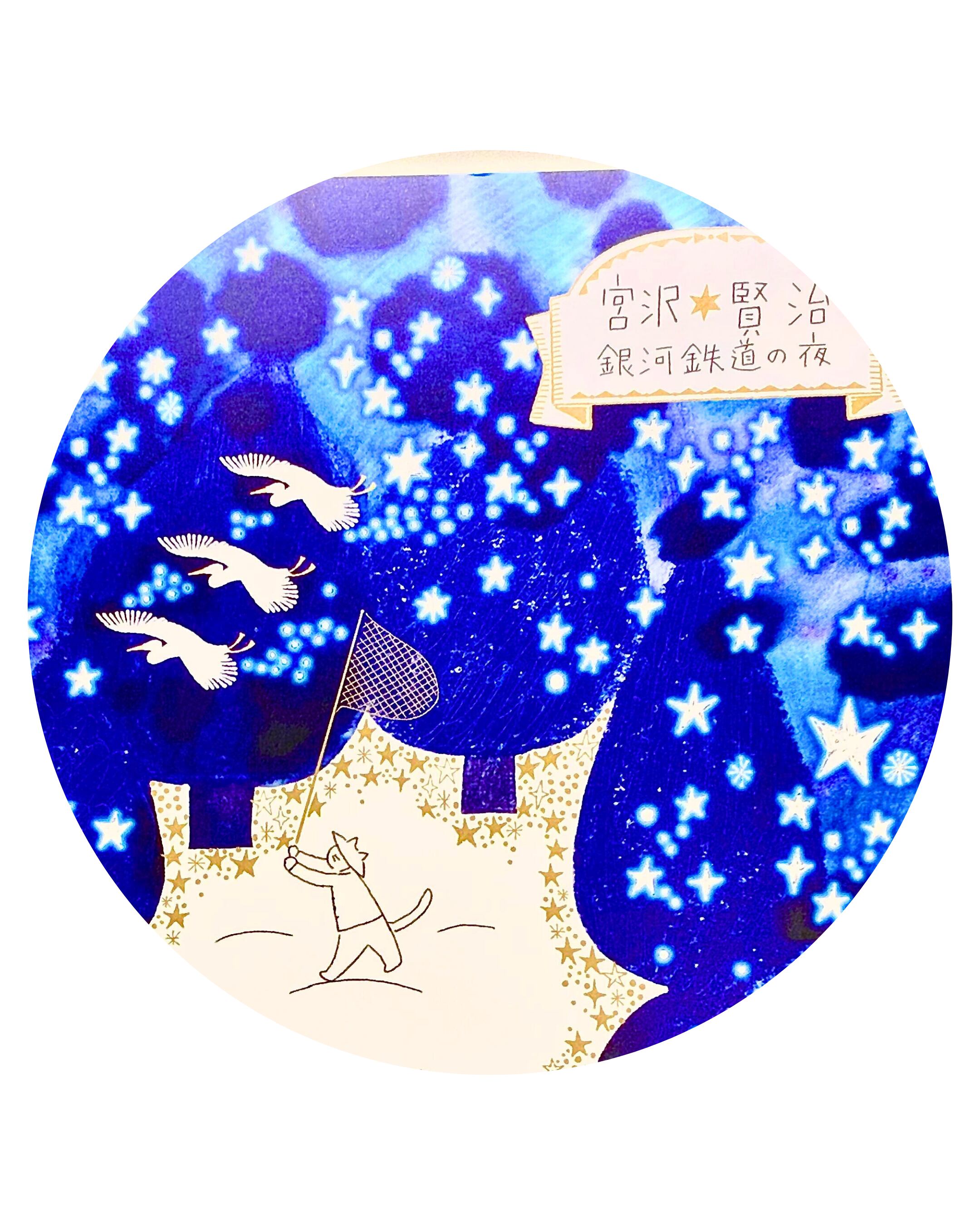 『銀河鉄道の夜』をイメージして描いかれたイラストが素敵です。