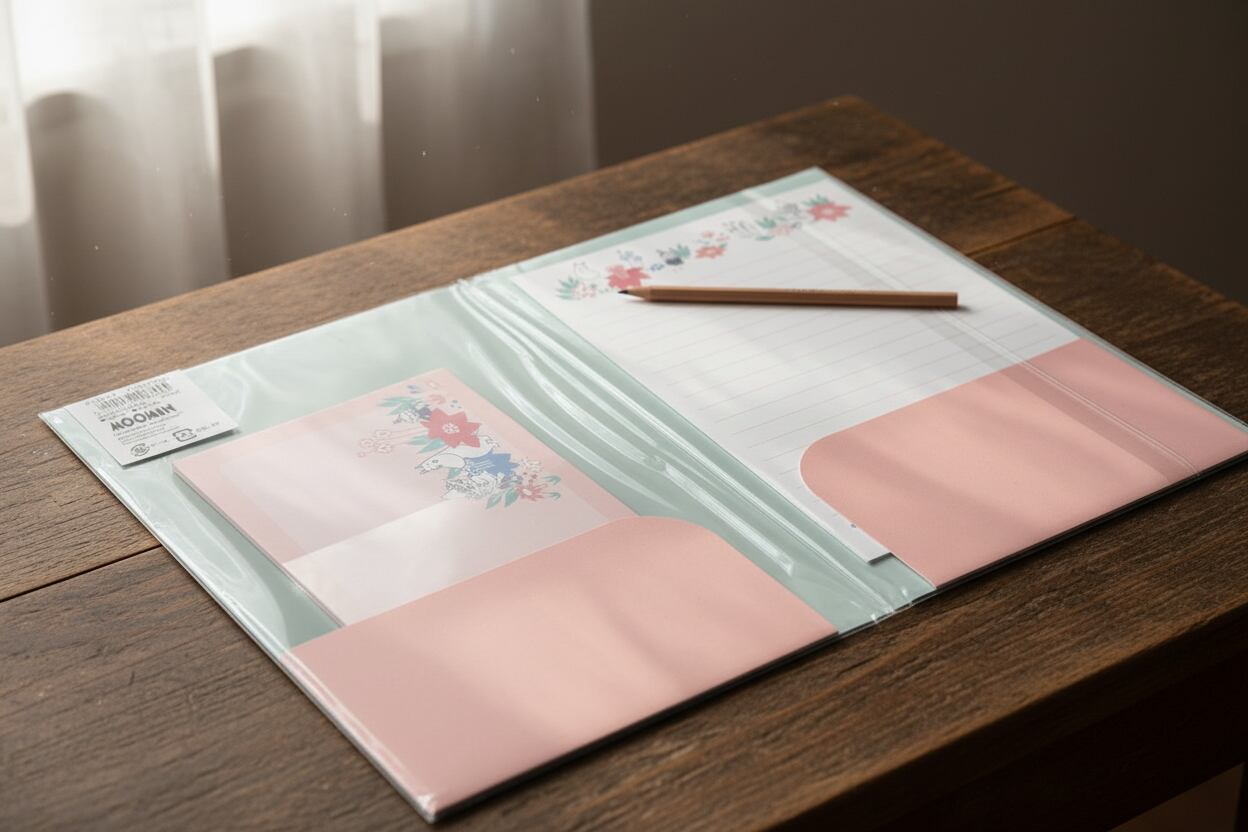 便箋8枚、封筒4枚、収納ケースのセット。