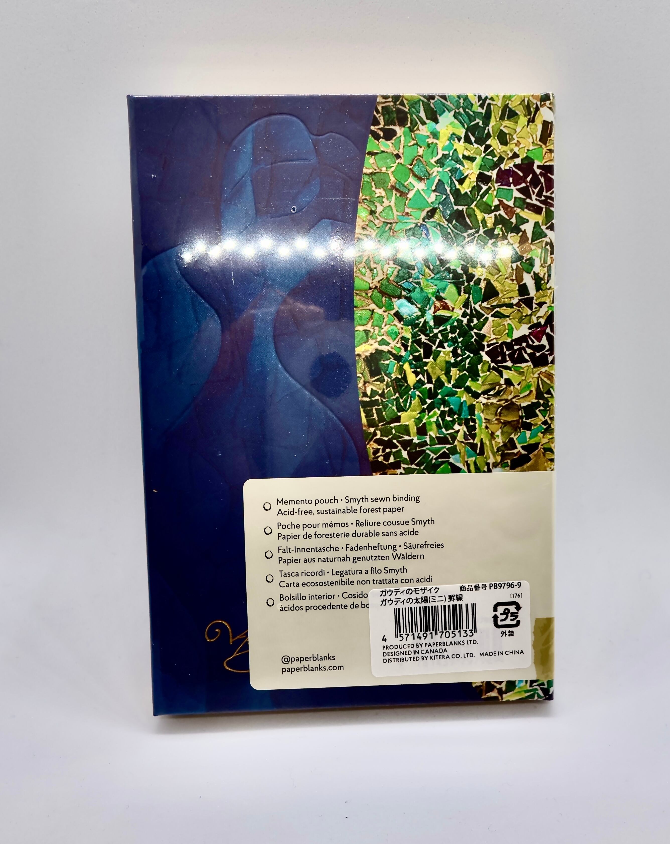入念な手作業による精緻かつ優雅なデザインのノートです。アントニ・ガウディ(1852?1926)はカラフルなモザイクやオーガニックフォームを使い、非常に独特な様式の彫刻をバルセロナのあちらこちらで制作しました。ガウディのビジョンへの賞賛の意を込めて、Casa Mil?のチムニーポットの抽象的なラインと共に、Park G?elの多柱室の天井に使われたモザイクの太陽を再現しました。