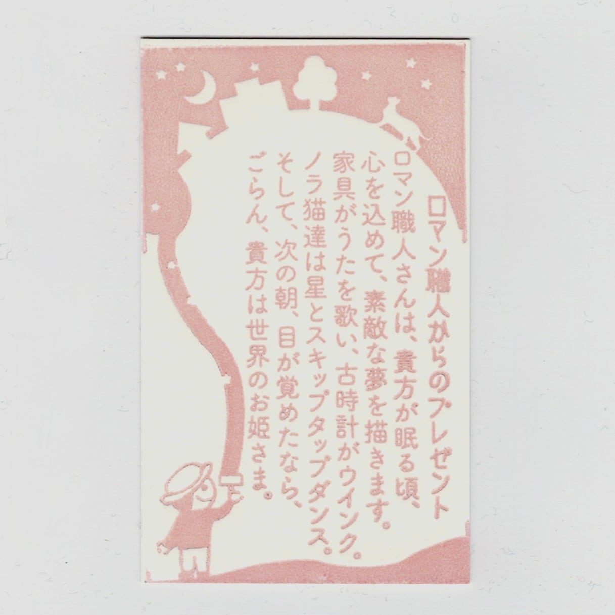 活版印刷 今宵もぼくはこの世界に夢を描く メッセージカード ピンク