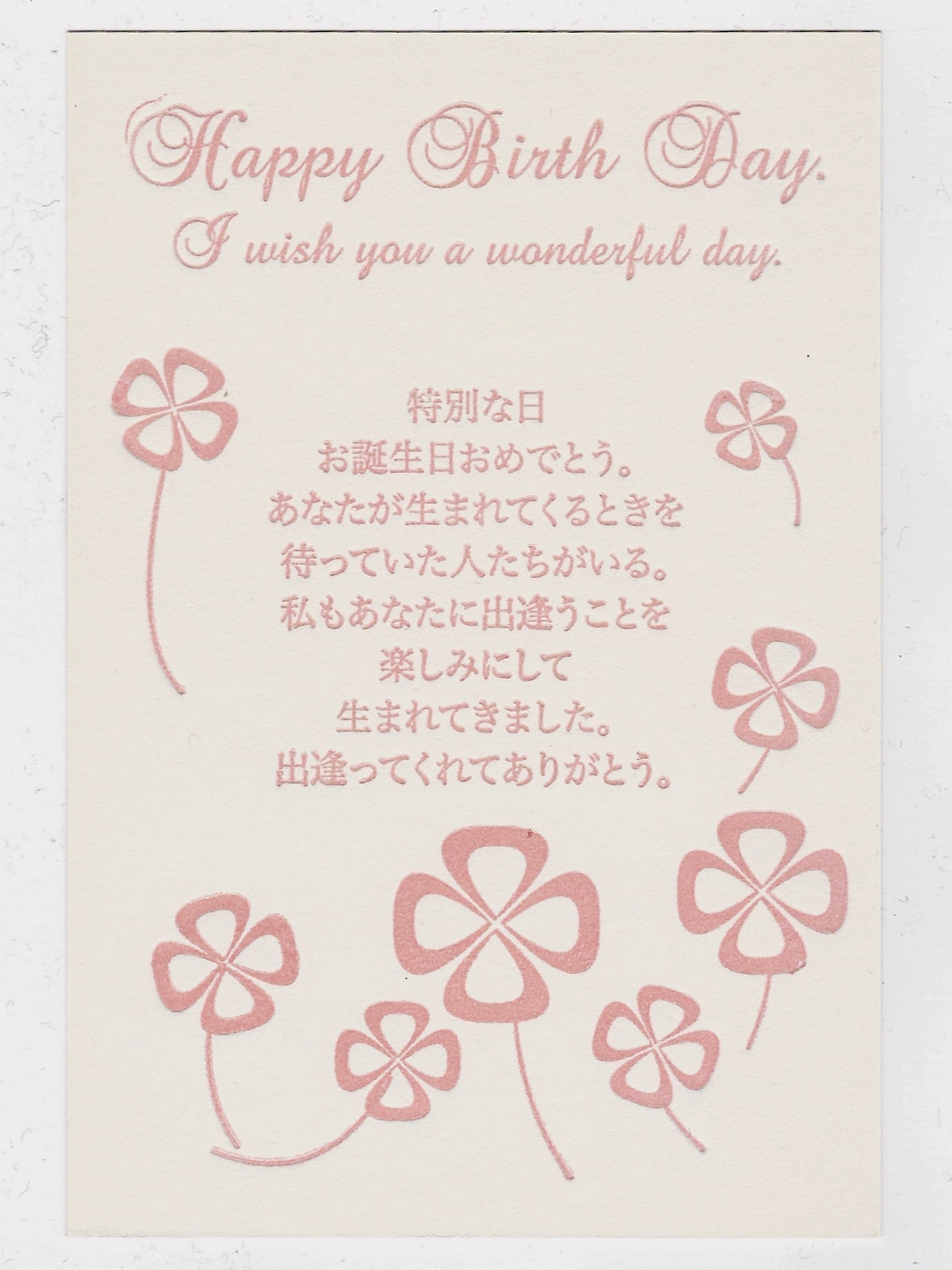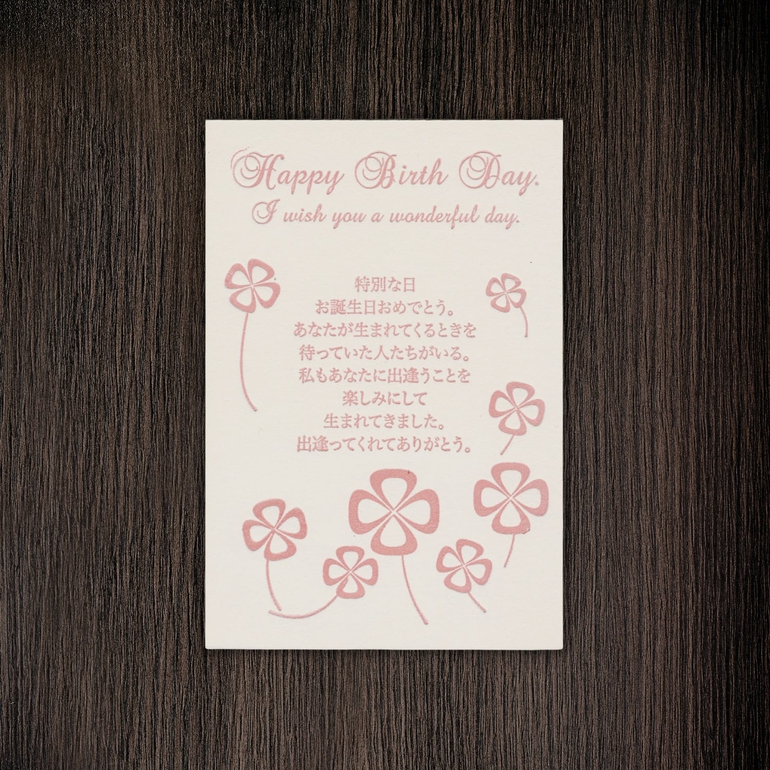 活版印刷 お誕生日と幸せのクローバー 葉書サイズ ピンク