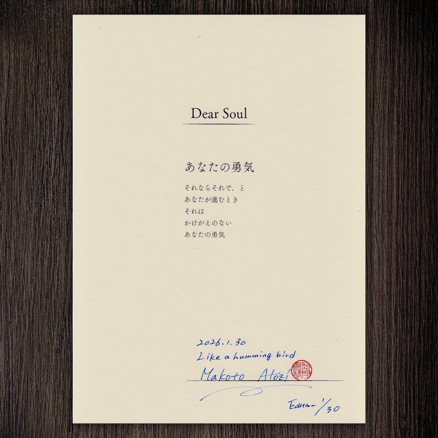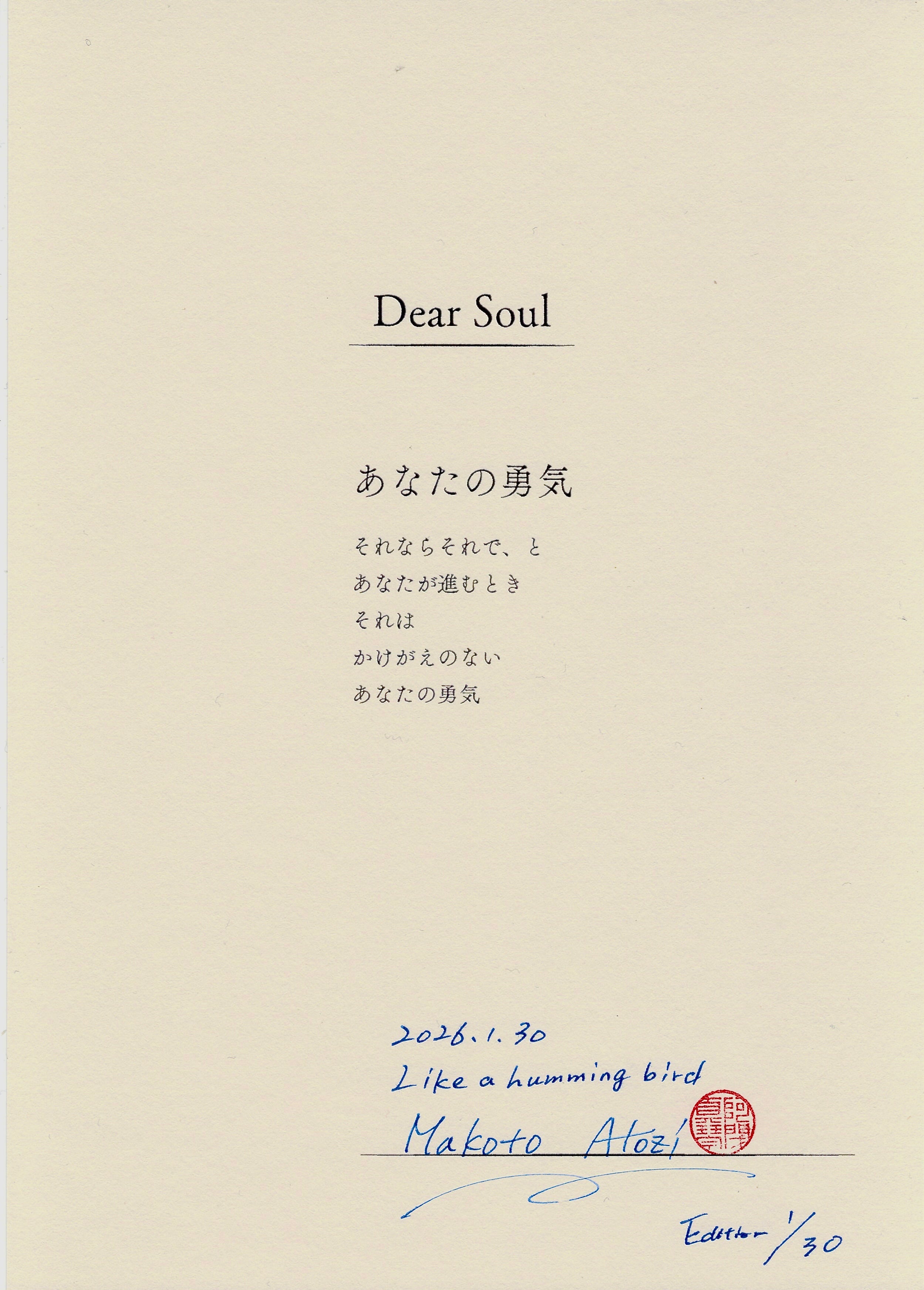 Poet Songs|署名詩作品 Dear Soul 『あなたの勇気』(Edition 1/30)