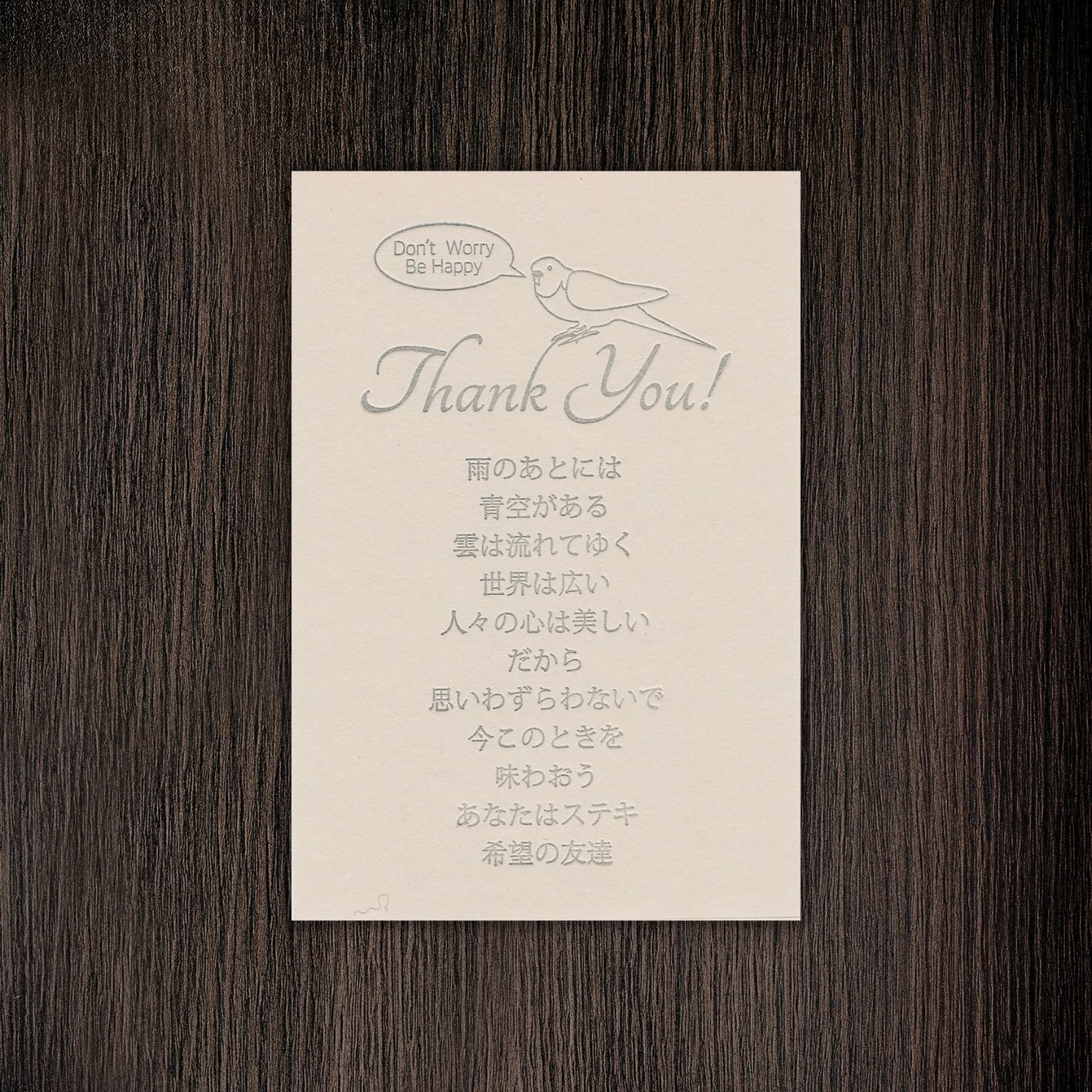 活版印刷 ありがとうバード ベージュベース Silver ink