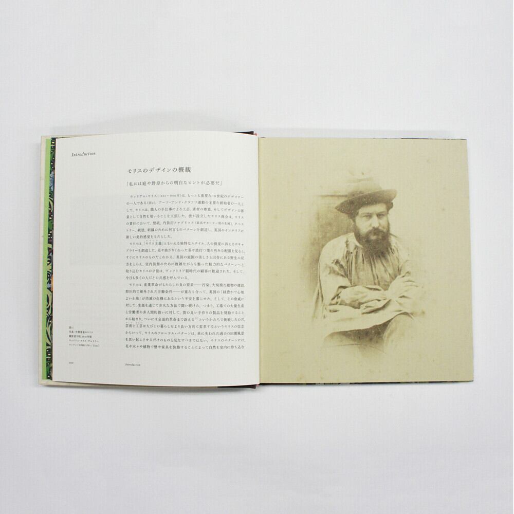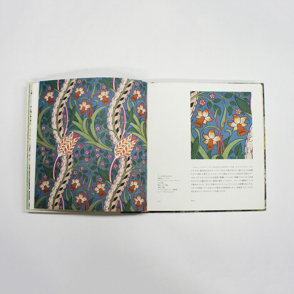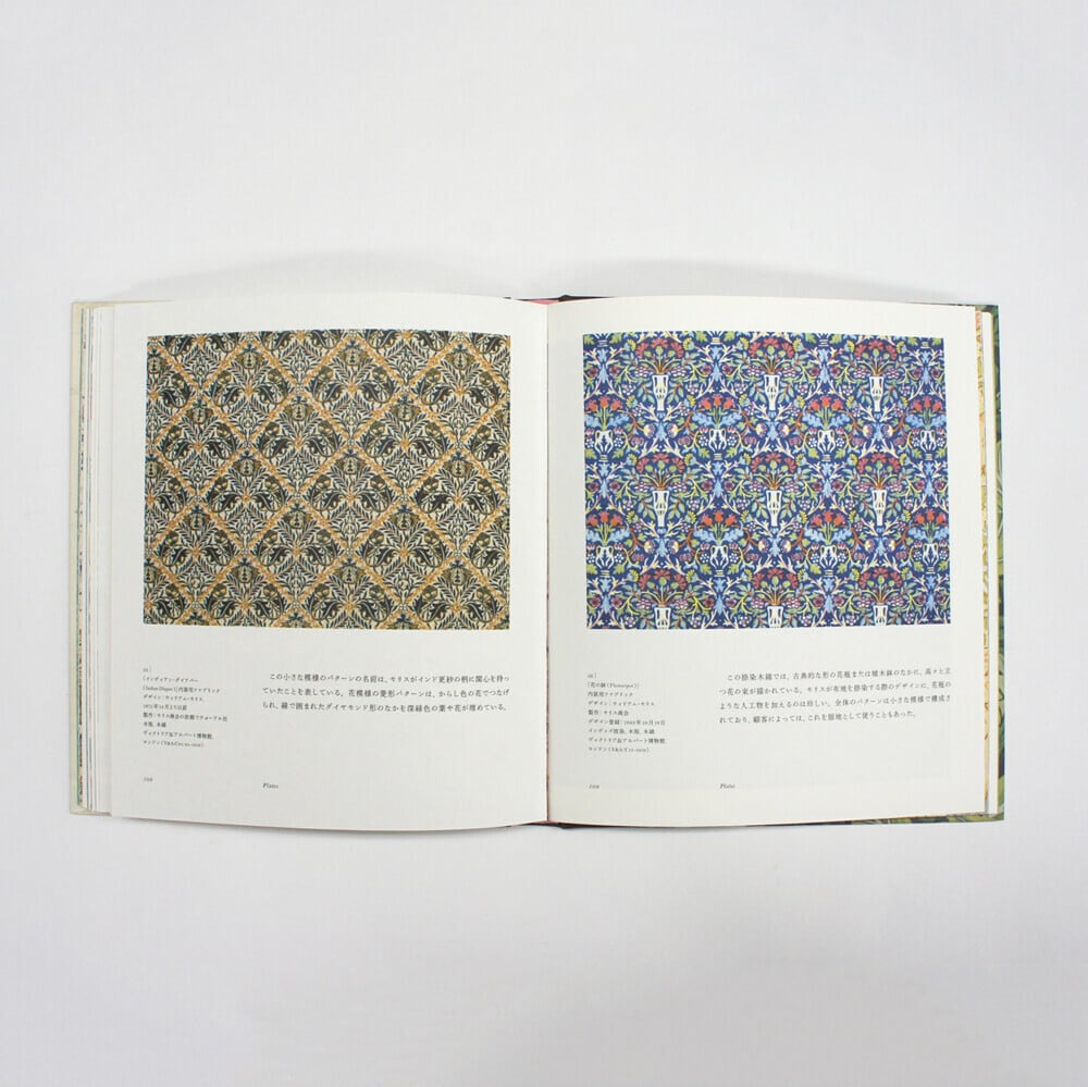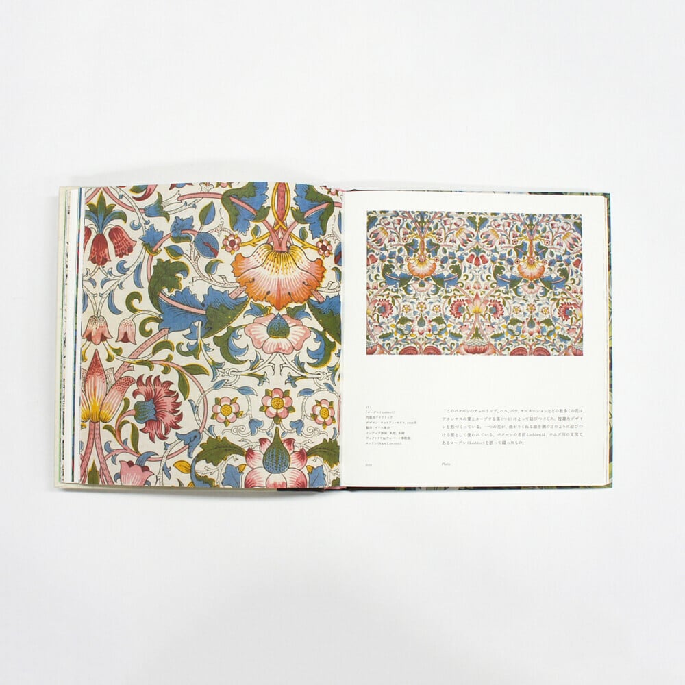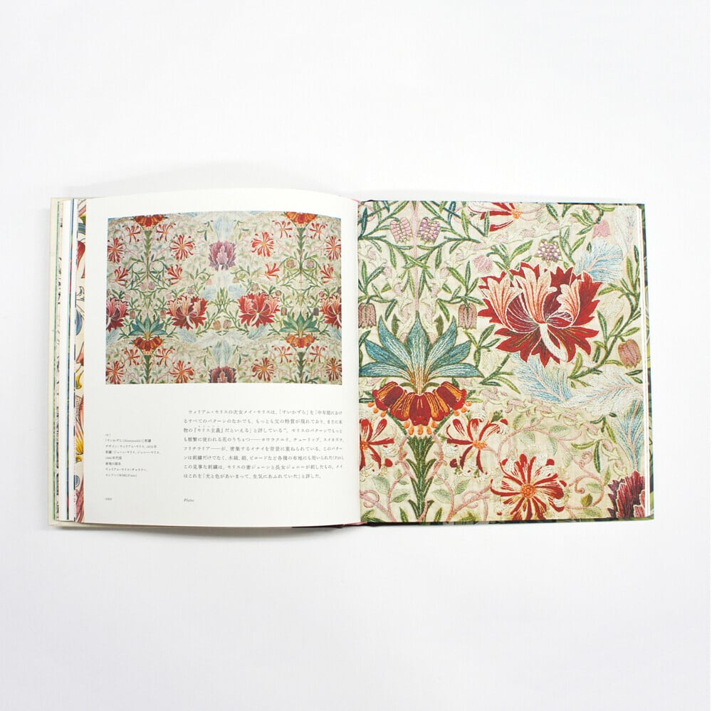 イギリスのヴィクトリア& アルバート博物館監修のもと、フラワー・パターンを中心に、モリスデザインの起源を辿る。ヒナギクやポピーなど、イギリスの自然の花々からインスピレーションを受けたパターンから、絨毯や刺繍、ビロードなどから学んだ中東デザインを取り入れたパターンまで、モリスの発想の足跡を華やかな図版とともに探ってゆく。そのほか、パターンだけでなく、モリスデザインのタペストリーの中で最高傑作と言われる作品「森」なども掲載。
