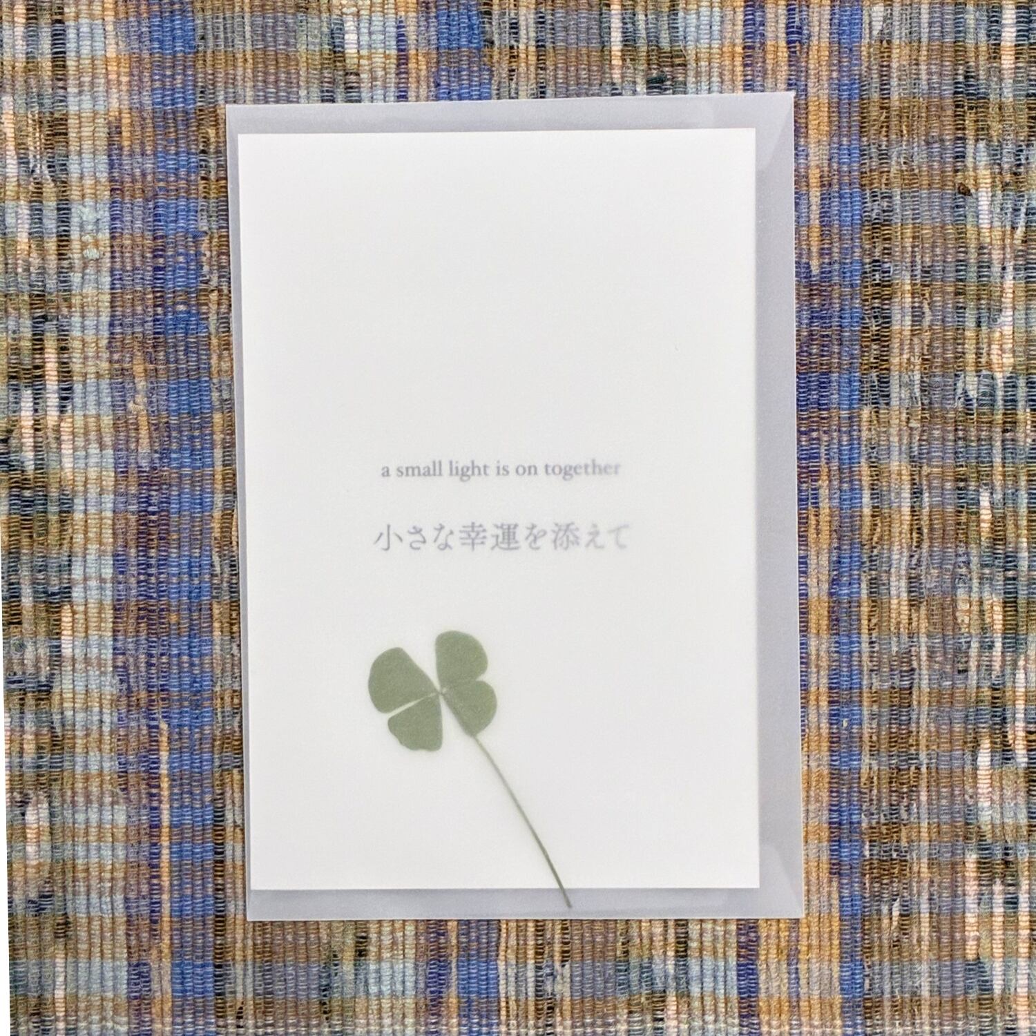 四葉のクローバーの押し花とともに。