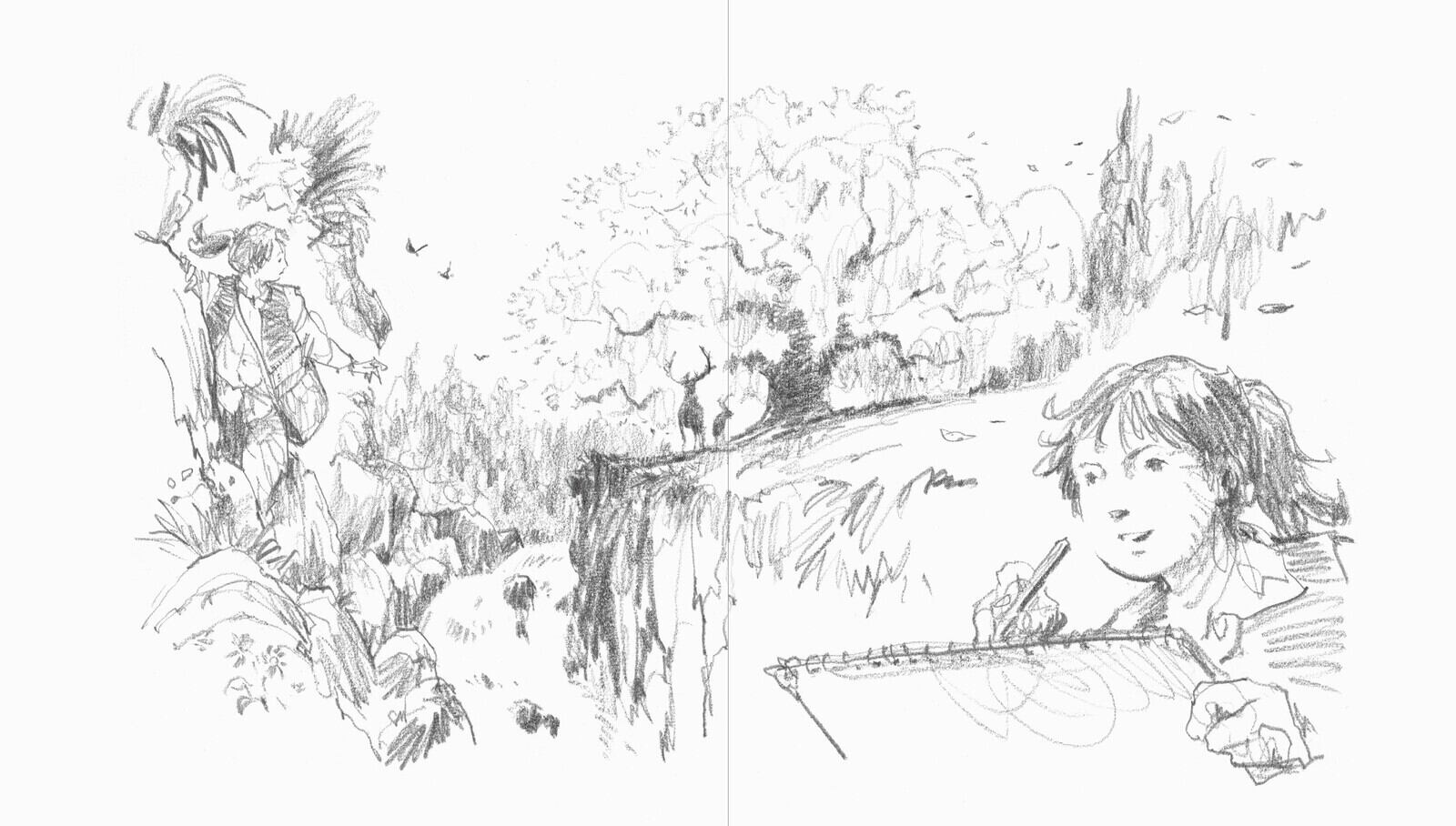 えんぴつ一本で描かれたモノクロの世界に、限りなくシンプルな言葉で綴られています。